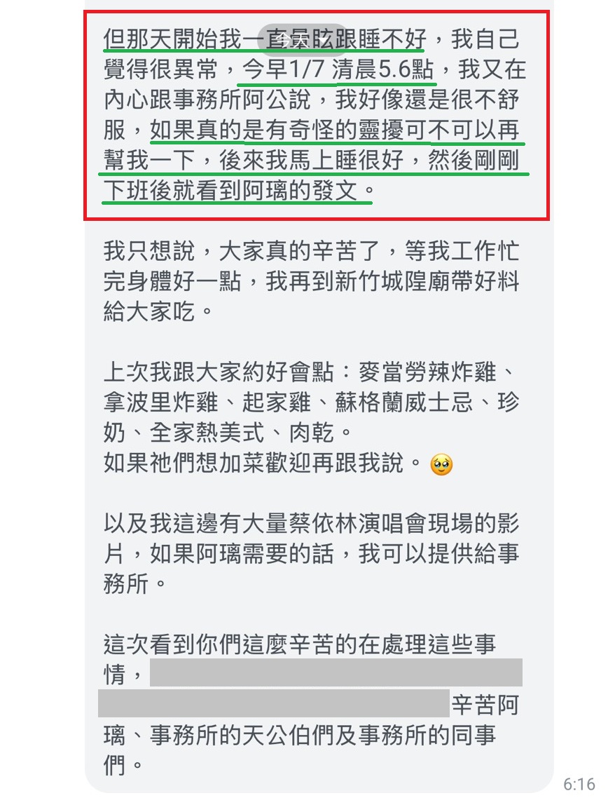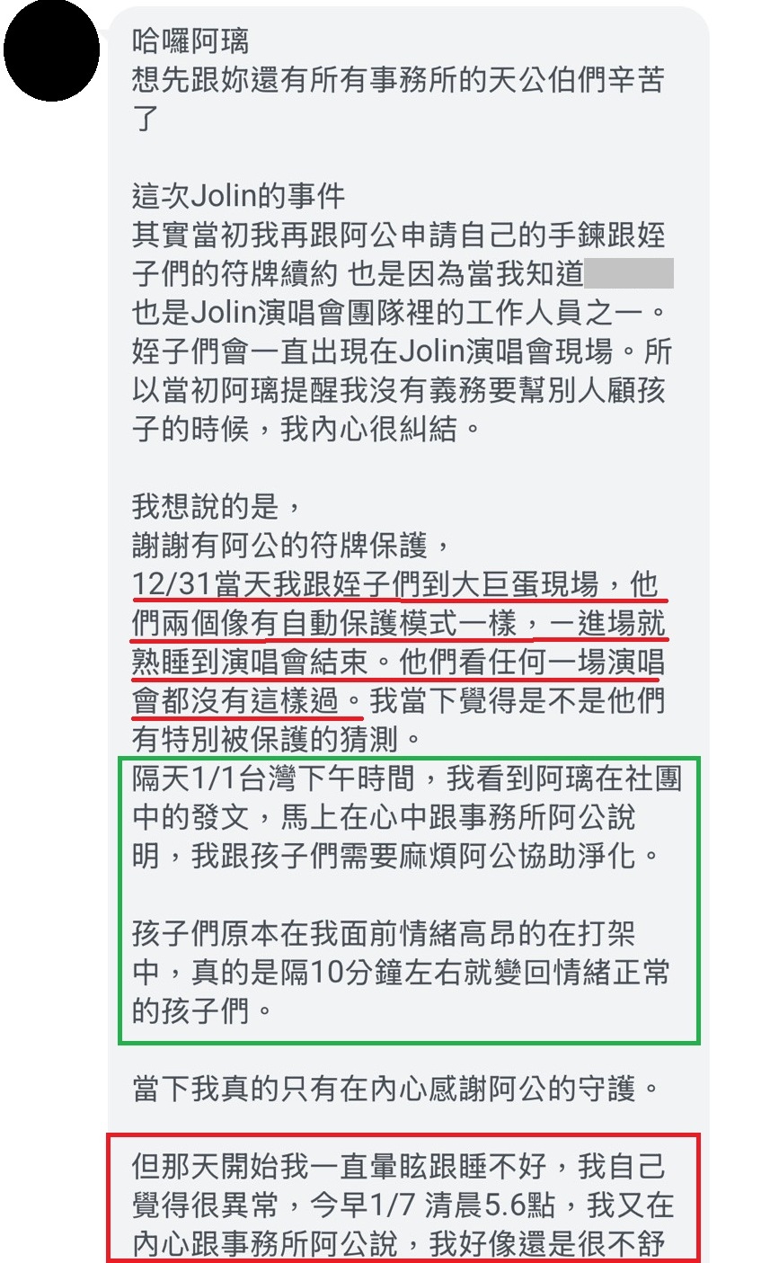 我昨晚研究完後,發現事情比我想像的還要嚴重得多,所以才會匆匆發了一篇短文,先讓還有症狀的朋友安心,告訴大家我們會繼續處理。沒想到整晚都睡不好,夢裡一直在幫人解除身上的東西,累到最後乾脆不睡了。結果一醒來,手機就跳出團友傳來的第一手現場狀況:散場後家人情緒異常亢奮、完全不正常。